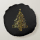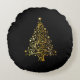 Merry Christmas Tree Stars Black Gold Shiny Moda Round Pillow