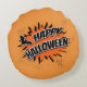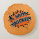 Feliz ilustracion de Halloween al estilo cómico con diseño de texto, murciélago y decoración de estrellas en medio tono de fondo. Es posible cambiar el color de fondo y añadir uno diferente al diseño con su elección.