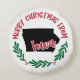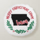 Cojín Redondo Feliz Navidad desde Iowa EEUU Blanco Verde Rojo