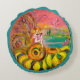 Un hada mágica vibrante está tocando arpa en los girasoles y una colorida planta de mariposa en oro brillante ...Pintura acrílica y acuarela con Relieve metalizado dorado .