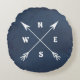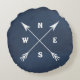 Ilustracion de brújula con flechas y decoración norte, este, sur y oeste sobre fondo de grano azul