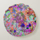 Cojín Redondo Flores psicodélicas de jardín verde de cal y rosa