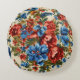 Cojín Redondo Flores verdes rojas y azules con hojas exuberantes