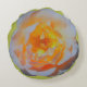 Un color de rosa perfecto en sombras sutiles del descoloramiento anaranjado y amarillo en suavemente verde llena casi los contornos de esta almohada cómoda. ¡Recline y relájese en un color de rosa!