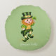 Cojín Redondo Forever Lucky Green Gnome and Clover on Light Gree