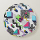 Cojín Redondo Formas geométricas multicolor, patrón retro.