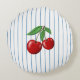 Cojín Redondo Fragmentos rojos en el patrón de franjas azules