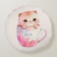 Cojín Redondo Gato blanco-rosado en una taza de té (2)
