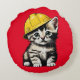 un gatito muy lindo con un sombrero duro amarillo. Se puede cambiar el color de fondo.