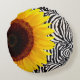 Cojín Redondo Girasol amarillo brillante en rayas del estampado