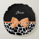 Cojín Redondo Girly Giraffe Print Naranja Ribbon Bow Con Nombre