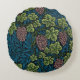 Illustration of grapevines with clusters of pink grapes and green leaves against an intricate blue leafy background. The design is vibrant and detailed.