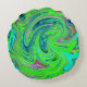 Cojín Redondo Groovy Lime verde y azul Resumen de arte retro