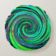 Cojín Redondo Groovy Resumen Retro Green y Magenta Swirl