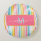Cojín Redondo Guión monograma de franjas arcoiris de verano