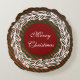 Cojín Redondo Guirnalda blanca estilizada en franjas rojas y ver