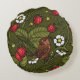 Cojín Redondo Guirnaldas y fresas en verde oscuro