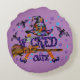 Halloween malvado pero adorable gorra bruja, escoba, calabaza, murciélagos y estrellas de color naranja acuático, morado y azul.
