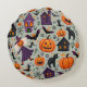 Es un cojín de Halloween con bruja de calabaza y tierno patrón de gato de calabaza.