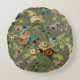 Cojín Redondo Hermosa ave exótica, fondo verde pantano