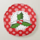 Cojín Redondo Holly Berry sobre el patrón de copos de nieve blan