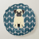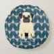 Cojín Redondo I love my Pug, Blue diamonds pattern