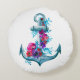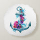 Moderno anclaje floral a mano y digitalizado con fondo blanco sobre almohada redonda.