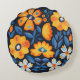 Cojín Redondo Ilustracion retro floral negrita en Naranja y azul