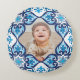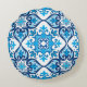 Cojín Redondo Imagen propia, azules y azules Azulejos