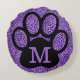 Cojín Redondo Impresión de pata morada con monograma en chita