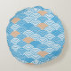 Cojín Redondo Japanese Waves Pattern Light Blue Beige White
