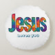 Pillow Beautiful colorful geometric design of the name of "Jesus" loves you (personalize message or scripture or name). Great gift for Christians who love the Lord and are proud to be His. This throw pillow is fun to give for religious celebrations, events and parties such as baptisms and summer BBQ's.