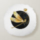 Pintura artística, oro, joyería, libélula espumosa con alas detalladas, filigree sobre flor silvestre dorada, contra círculo texturado negro. Lluvia dorada.