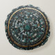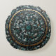 Fotografía fotográfica fotográfica, frontal, macro de una gran pared de mosaico de personalizado con un impresionante patrón circular abstracto. El mosaico se compone de miles de tesoros de corte preciso hechos a partir de una variedad de materiales de lujo: mármol de Guatemala verde profundo, latón pulido, pizarra negra mate y mármol blanco de Carrara. Cada pieza conserva su textura y color únicos, pero se ajusta perfectamente para formar un diseño armonioso e intrincado. El alto nivel de detalle destaca la artesanía y los materiales ricos, creando una fascinante interacción de texturas y tonos que exudan elegancia y dominio artístico.