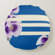 Composición abstracta azul, púrpura y blanca con flores y líneas. Diseño de collage de arte abstracto sobre cojines redondos.