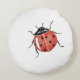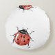 Almohada blanca redonda con ladybugs rojos en acuarela.