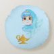Cojín Redondo Lámpara de magia dorada y genio sobre azul claro