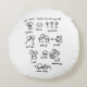 Una almohada blanca redonda con un sencillo dibujo negro de actividades que le dan alegría a su vida. Estos incluyen abrazos de amigos y seres queridos, dar sonrisas o recibirlas, tener amigos, besos, tiempo pasado con la familia, sueño reparador profundo, amarse el uno al otro, compartir la risa, crear buenos recuerdos, leer un buen libro. No olvides que esto incluye jardinería en la parte posterior de la almohada, un chica con un vestido rosa que lleva una cubeta y una herramienta de jardinería que se dirige a hacer jardinería simple. Este es un gran regalo para los que necesitan un recordatorio de que la felicidad está en las cosas simples. Gracias por visitarnos. Visita mi Tienda Zentiful para ver otros artículos interesantes: http://www.zazzle.com/gifts?ch=zentiful