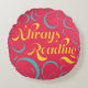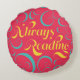 "Siempre leyendo" un diseño rosa, azul y amarillo brillante con remolinos. almohada perfecta para el gusano del libro que siempre está leyendo. *Tenga en cuenta que la marca de agua Zazzle que aparece en la vista previa del zoom NO aparecerá en el producto impreso final. © Bookish y WonMart