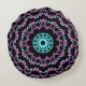 Cojín Redondo Lilac, mandala negra y turquesa.
