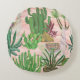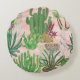 Cojín Redondo Llamas acuarelas y patrones de cactus.