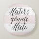 Una almohada divertida y moderna con un guión moderno de caligrafía en rayas blancas y rosas. Otras citas y artículos similares se pueden encontrar en mi tienda. "Los odiadores odiarán"