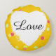 Cojín Redondo lunares rosados, amarillos y amor blanco del