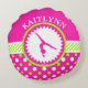 Almohada de tiro redonda personalizada de la gimnasia que ofrece un diseño del rosa, del verde, y blanco del lunar. Utilice el campo de encargo del texto para añadir un nombre antes de que usted ordene. O si usted prefiere, deje el espacio en blanco del campo del texto para ningún nombre. ¡Usted puede también utilizar el "personalizar él" botón para cambiar la fuente!