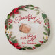 Bring warmth and joy to any space with this festive round throw pillow, part of the 'Celebrating the Magic of Childhood' collection. Featuring a vibrant border of red poinsettias, white blossoms, pine sprigs, and berries, the circular design beautifully frames a soft cream center where a removable baby photo makes the piece truly personal.