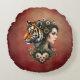 Mundo mágico de la floral de steampunk: Un diseño artístico y mágico de retrato que combina motivos naturales con elementos mecánicos. El motivo es el perfil de una mujer y el perfil de un tigre para simbolizar la fuerza y el enfoque. Debajo de las dos figuras se encuentra un marco en forma de corazón decorado con flores y vegetación y detalles sutiles de las relojería.