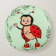 Cojín Redondo Mariquita Feliz y Hojas de Planta en Verde Claro