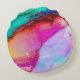 Una almohada redonda de diseño artístico abstracto. Pintura acuarela con colores que mezclan y mezclan creando un bonito patrón de mármol fluido.
