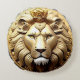 Representación artística detallada de un león de la región adornada con una corona en un emblema circular de oro que representa fuerza, nobleza y autoridad real.