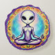 "Este diseño sereno y místico presenta una figura extraterrestre gris con ojos negros grandes, meditando pacíficamente en una posición de loto. El alien se enfrenta a un vibrante e intrincado patrón de mandala con detalles cósmicos y llenos de estrellas. La combinación crea una sensación de armonía universal y conexión espiritual. Este diseño es versátil para productos que promueven la meditación, la atención, la exploración espiritual, o aquellos con una estética cósmica y artística. Imagínenlo sobre esteras de yoga, cojines de meditación, tapices, arte espiritual o ropa única".